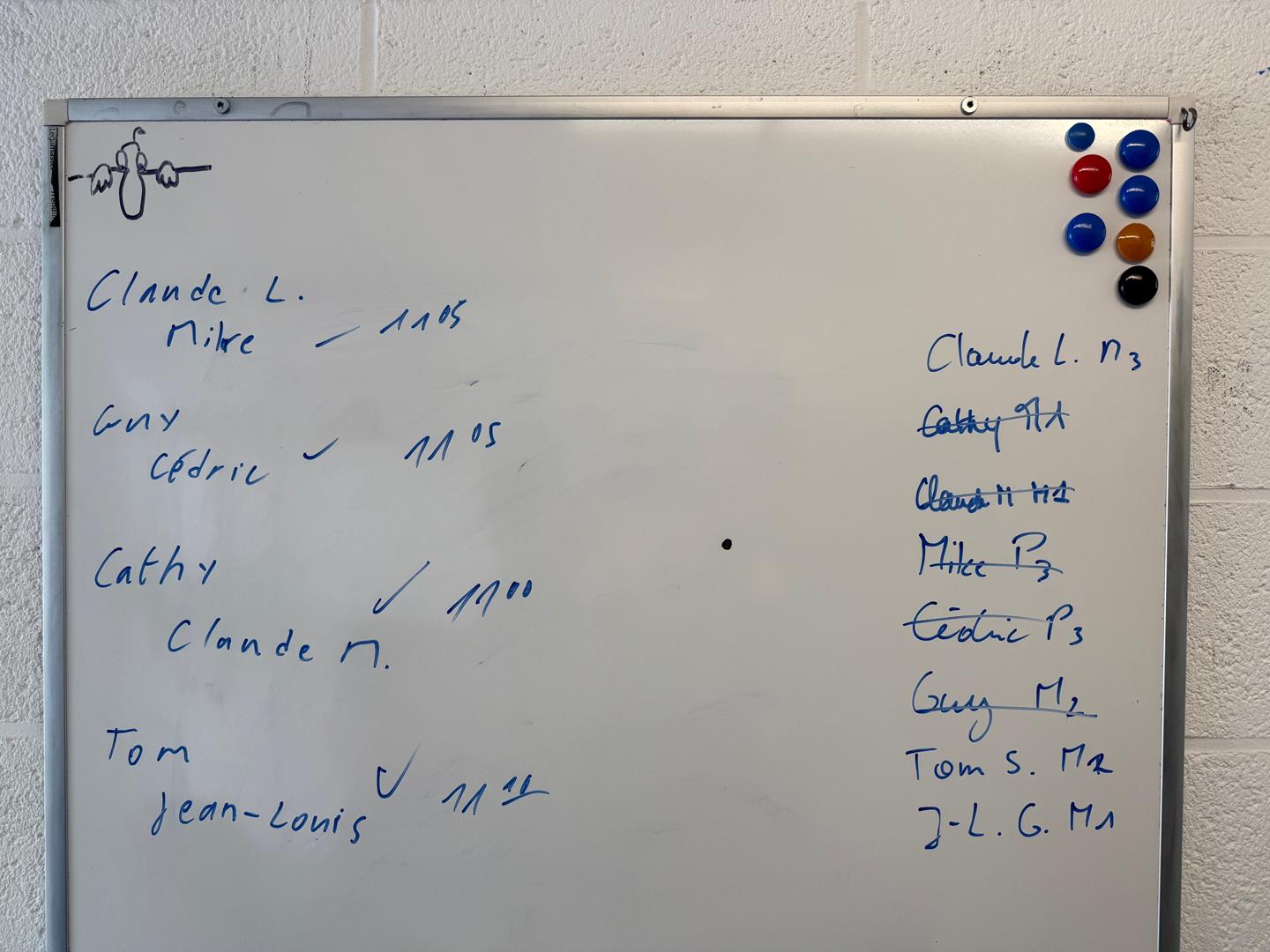 Au programme le matin la vérification du matériel et quelques exerices en étanche pour se remettre en forme et d'être prêt à encadrer les plongeurs durant la semaine. Bien que nos chefs de palanquée sont régulièrement présents en fosse, les exercices sous conditions réelles nécessitent une aisance différente. Les moniteurs qui réalisenent régulièrement des exercices et examens en au libre sont plus habitués, mais pour les plongeurs qui se limitent aux promenades, la révision des exerices est un élément de sécurité important.